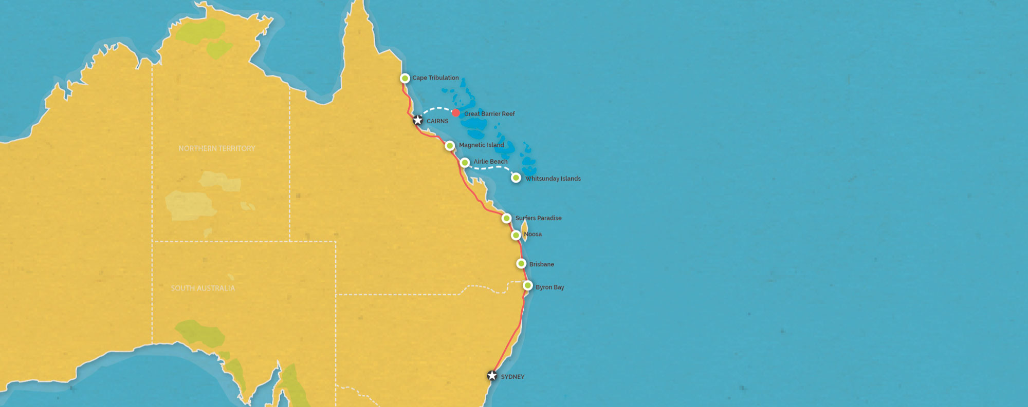 This trip offers complete flexibility, allowing you to choose your preferred start date, finish date, and location. You can customize the number of nights as well. We suggest starting from Cairns, Sydney, or Melbourne. Here's an example itinerary starting from Sydney to Cairns.